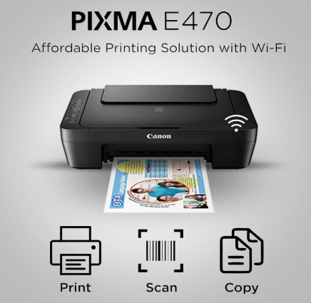Canon PIXMA E470 All in One (Print, Scan, Copy) WiFi Ink Efficient Colour Printer for Home