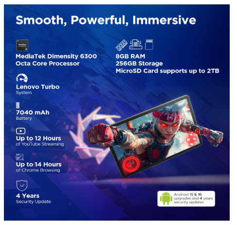 Lenovo Idea Tab Smartchoice | Wi-Fi + 5G |11" Display, 2.5K Resolution, 90Hz Refresh|8GB RAM, 256GB ROM| MediaTek Dimensity 6300| 7040mAh|4 Speakers| USB-C| Luna Grey