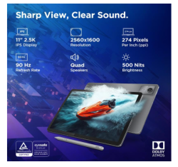- Display:- 11 Inch Screen | 2.5K Display | Resolution: 2560x1600 | 500nits Brightness | 72% NTSC | Anti-Reflection | TÜV Lowblue Light